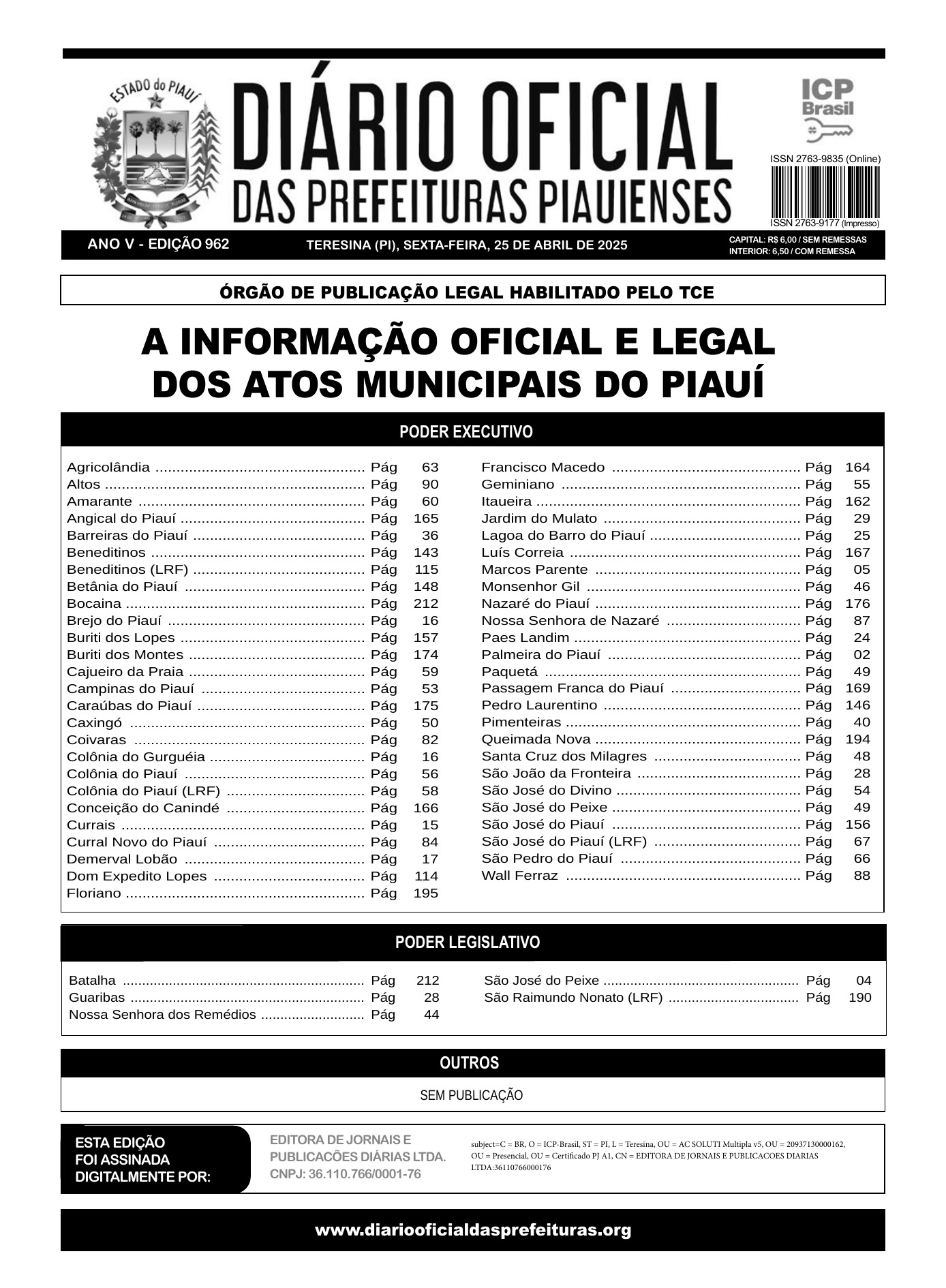 - 21/06/2021 07:12 Diário Oficial das Prefeituras Piauienses lança primeira edição
