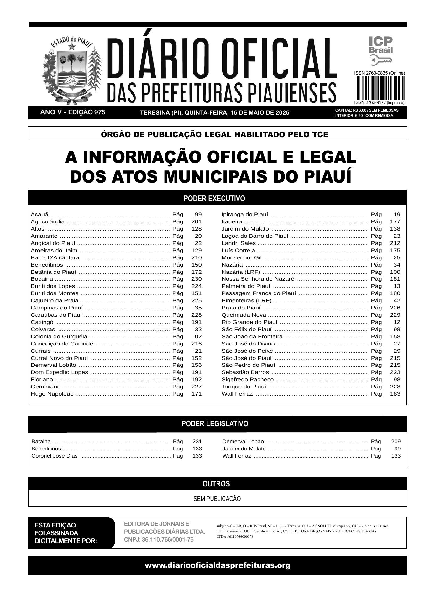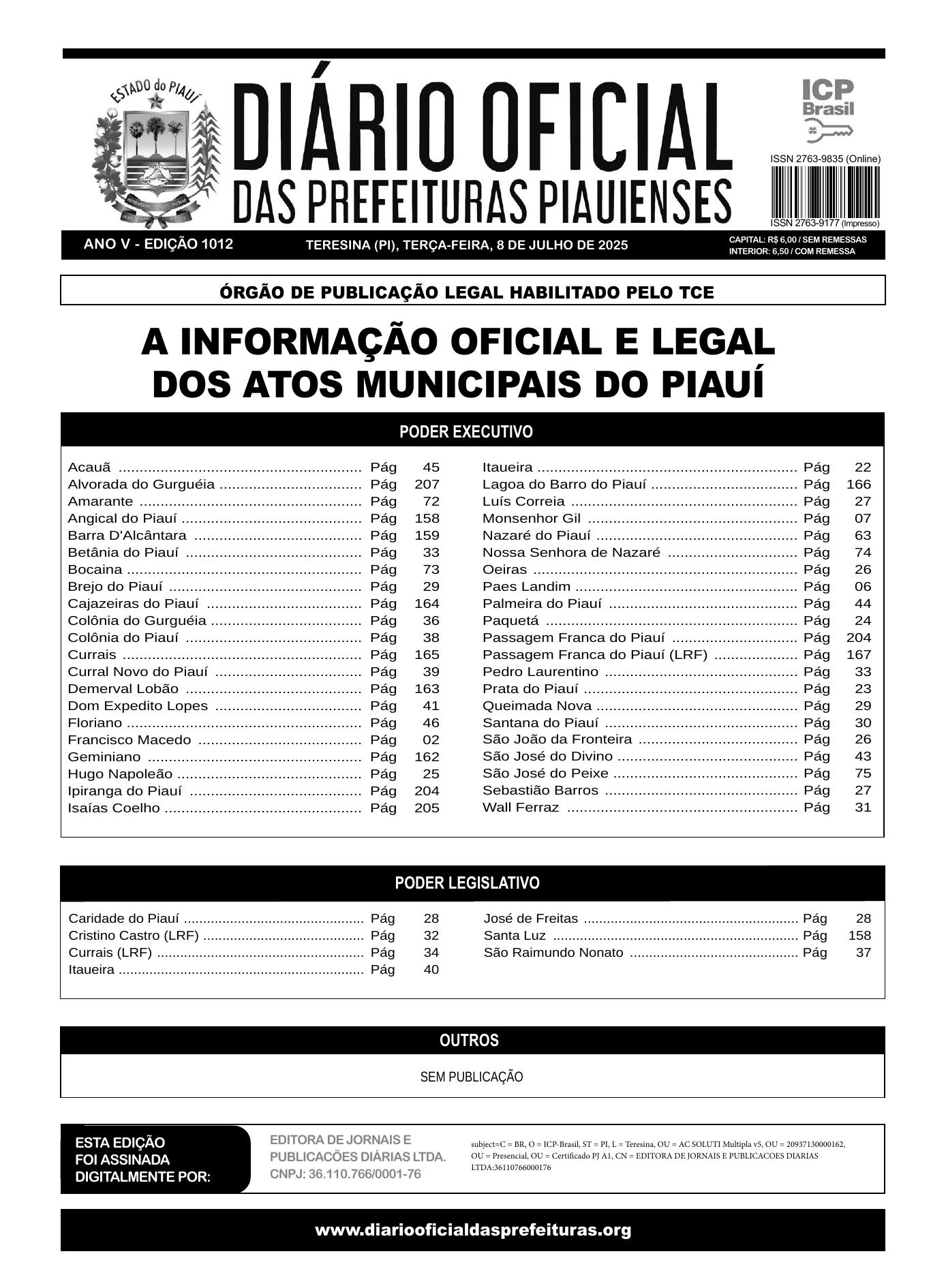 - 07/05/2021 10:11 Diário Oficial das Prefeituras Piauienses recebe aval do TCE