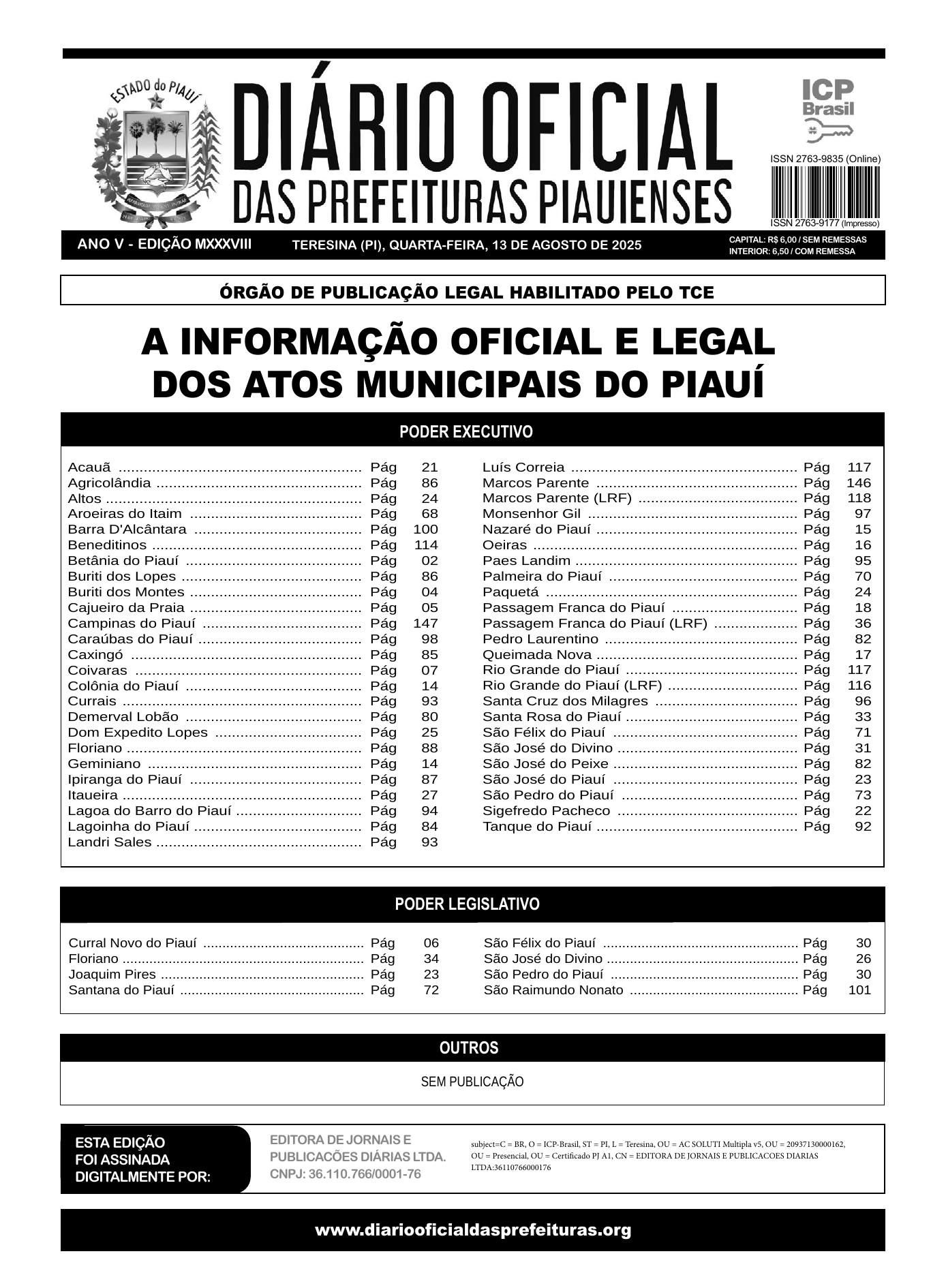 - 07/05/2021 16:58 Novo Diário Oficial abre caminho para livre concorrência no Piauí